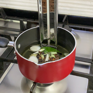 Gather the aromatics you will be using for the chilli oil. Pick a saucepan which has at least 1 inch clearance between the oil and the rim of the saucepan.